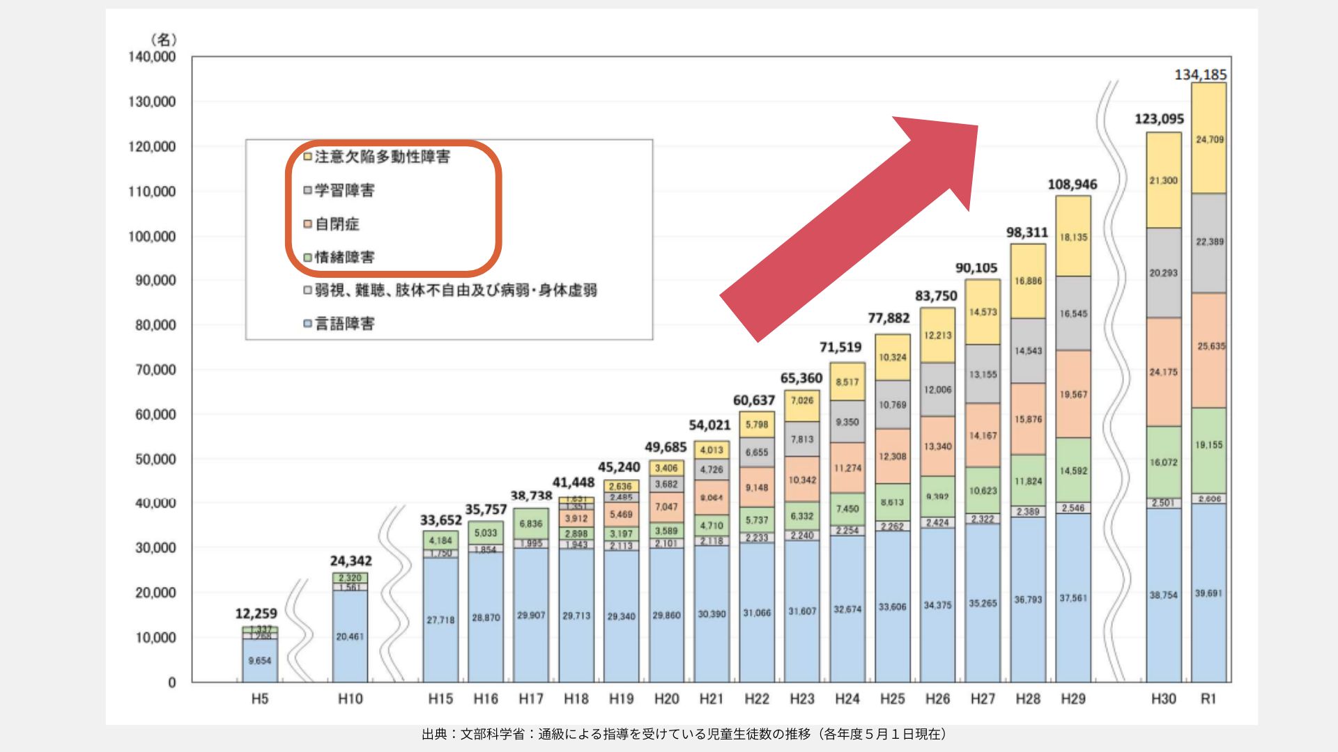 文部科学省によると、発達障害と診断される人は年々増加。