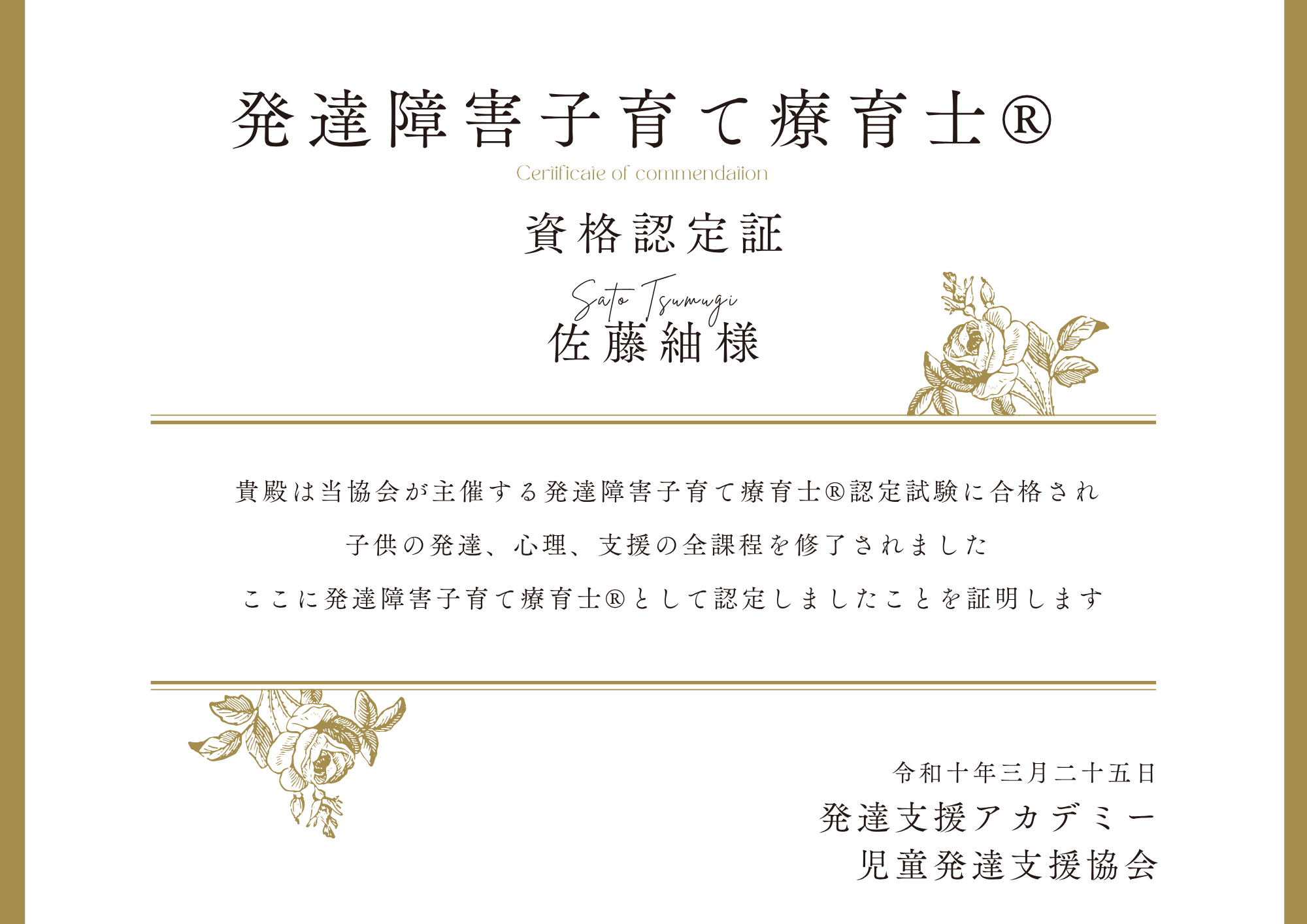 | 資格名称 | 発達障害子育て療育士® |